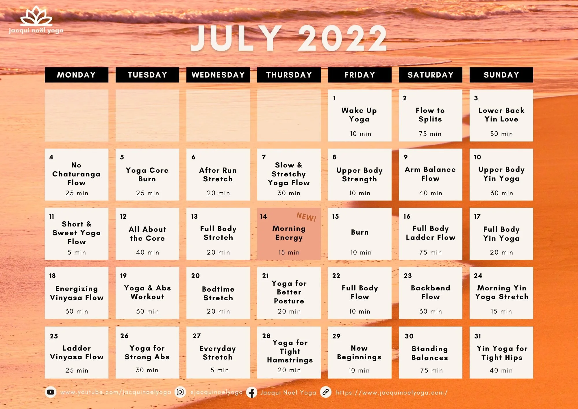 Yoga Calendar A free yoga practice for every day of the year.All videos will be posted on the Jacqui Noël Yoga YouTube channel.